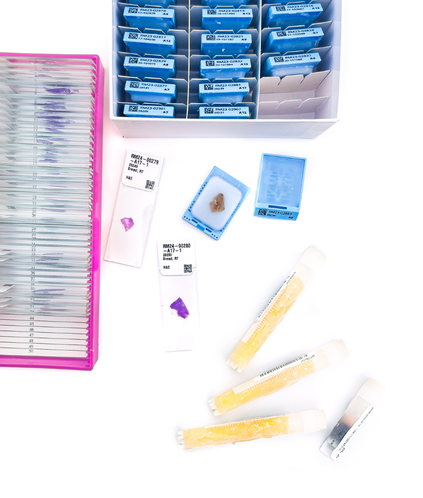 All of our samples undergo on-site pathologist review, including tissue quality (tumor percentage, necrosis, adjacent normal controls), diagnosis confirmation, and molecular annotation when available.